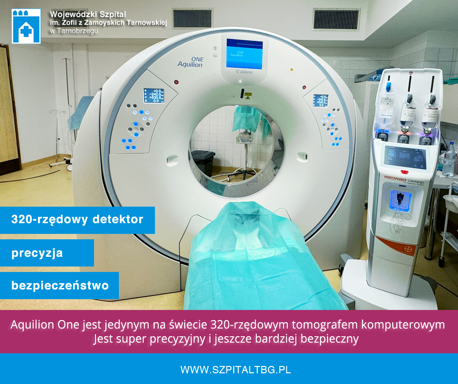 Zakład Diagnostyki Obrazowej w Tarnobrzegu wyposażony jest w tomograf firmy Canon – Aquilion One – od 2022 roku. Jest to pierwszy i jedyny na świecie 320-rzędowym (640-warstwowym) tomograf komputerowy. Jest super precyzyjny i jeszcze bardziej bezpieczny dla pacjenta niż aparaty niższej klasy. Cechą wyróżniającą go spośród innych tomografów jest największe pole widzenia wynoszące 16 cm. Dzięki temu Aquilion One może wykonać badanie w czasie 0,35 sekundy przy minimalnej dawce promieniowania pochłoniętej przez pacjenta.