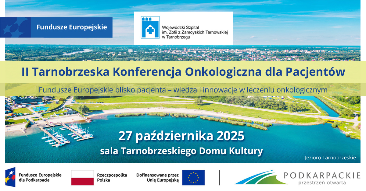 Serdecznie zapraszamy do udziału w II Tarnobrzeskiej Konferencji Onkologicznej dla Pacjentów, która odbędzie się 27 października 2025 r. w godz. 10:00 – 14:30 w Tarnobrzeskim Domu Kultury.