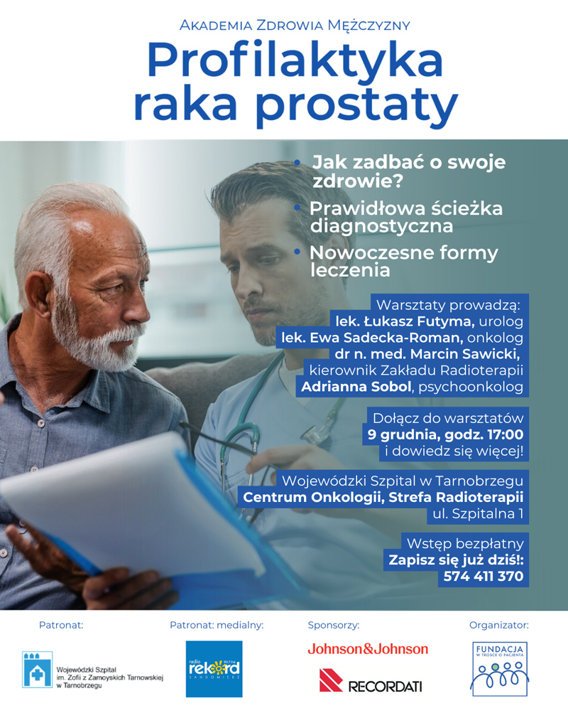 Wojewódzki Szpital im. Zofii z Zamoyskich Tarnowskiej w Tarnobrzegu, na zaproszenie psychoonkolog Adrianny Sobol, dołącza do ogólnopolskiej Akademii Zdrowia Mężczyzny i zaprasza wszystkich Panów na wyjątkowe, bezpłatne wydarzenie poświęcone profilaktyce raka prostaty.